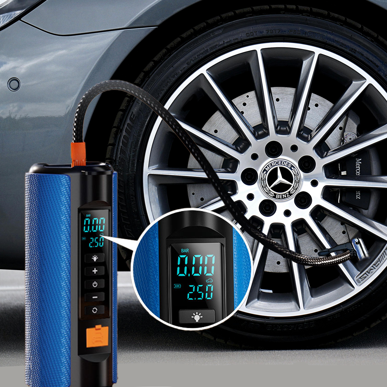 The compressor boasts a powerful build-in cylinder capable of producing up to 150 PSI/10 Bar of pressure, enabling it to inflate a wide range of objects. With our convenient clip-on valve connector and its accompanying attachments, inflation tasks of any kind become effortless.